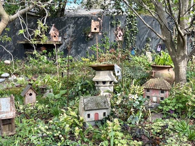 How do you create natural garden magic and mystery in a bland suburban landscape? Just six years ago this garden was all grass — one tree, one camellia bush, and a too-large concrete driveway. Now, it feels stitched together by imagination, magical plants, whimsy, and soil under fingernails. That same driveway welcomes guests with hundreds of pots of flowers, bonsai trees, and vegetables. Beyond an outdoor living room, curving paths seem to choose their own direction through a well-planned garden journey, winding round a frog pond, greenhouse, and through a hidden garden with a hand-woven wattle feature. Art, handmade treasures, fountains, and a giant bamboo curtain add interest through the jungle of plants. Every corner offers a gentle surprise — the kind that makes you slow down and smile. This is a space shaped not just by gardening, but by the joy of making, the curiosity of watching things grow, and the quiet delight of creating a world for plants, frogs, bugs, and people to enjoy.