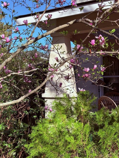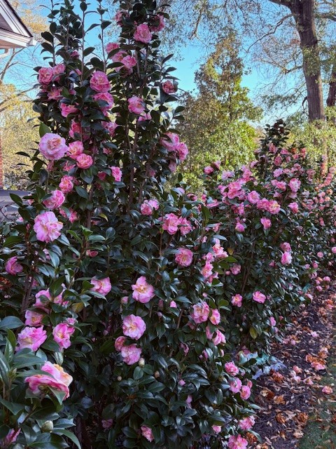 The homeowners started by remodeling the main home and pool house and then tackled the gardens and pool area, clearing it of brush, adding emerald zoysia grass and working with landscape designer, Gerald Stevens, implementing a four-seasons strategic planting of shrubs and flower beds. Over time, the emergence of defined pathways and seating areas tame the wilder edges. By the mid-2020s, the backyard had evolved into a polished outdoor retreat: lush, well-maintained lawns framed by maturing roses, camellias and azaleas, with new hardscaping elements and appropriate lighting, creating inviting zones for relaxation or entertaining amid the property’s historic charm. This evolution turned a once-overlooked expanse into a vibrant extension of the home, mirroring years of dedicated care and investment.